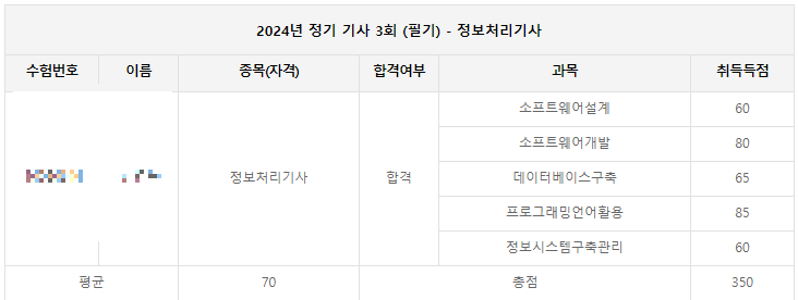 나는 비전공자이고 필기시험을 몇 번 보았지만 과목에서 과락이나 이번 3회차에